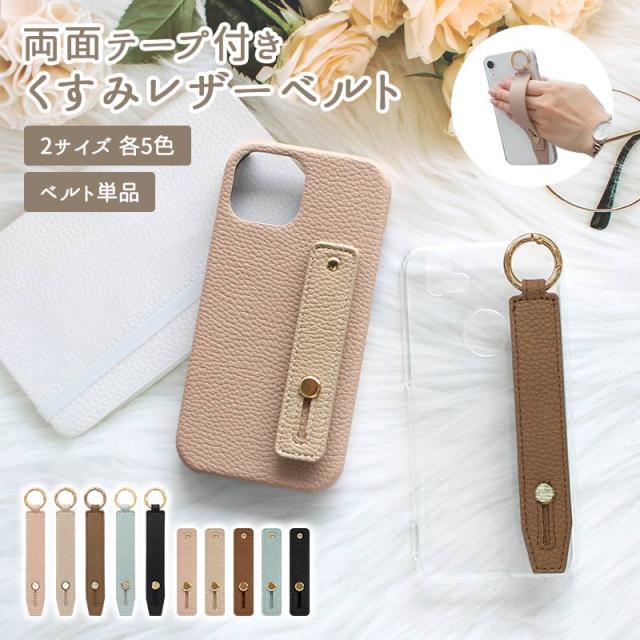スマホバンド スマホベルト 落下防止【両面テープ付きくすみレザーベルト】手 指 固定 ベルト スタンド かわいい レディース ニュアンスカラー くすみ ギフト ポッキリ ぽっきり ポイント消化 メール便送料無料