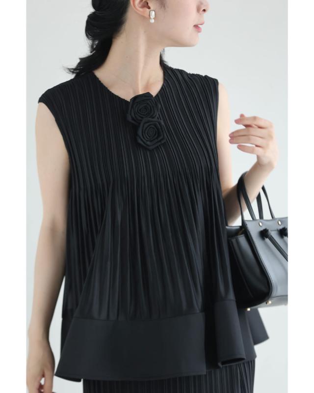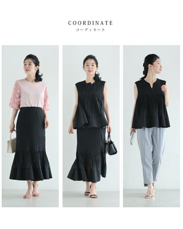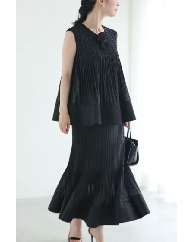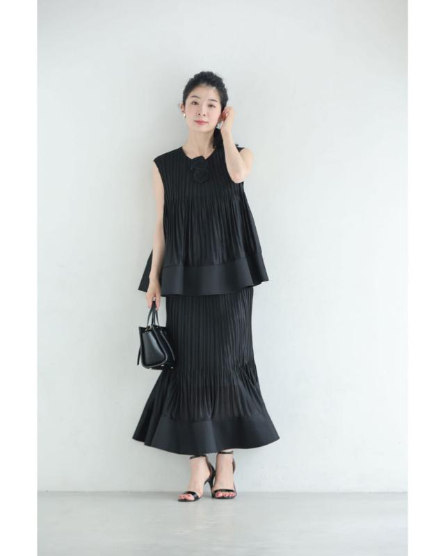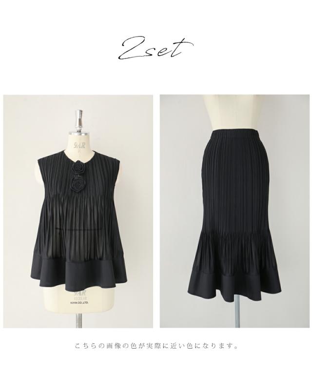 w50553nc 新作 新着 再入荷 CAWAII FRENCHPAVE フレンチパヴェ エレガント ベーシック カジュアル 可愛い かわいい カワイイ おしゃれ オシャレ お洒落 個性 個性的 定番 ベーシック 大人かわいい 大人可愛い 上品 女性らしい デザイン スタンダード ナチュラル きれいめ キレイめ シンプル フェミニン レディース レディースファッション 大人 ママ ミセス 30代 40代 50代 60代 黒 伸びやかプリーツのフレア裾カットソーとフレア裾スカートの2点セット ブローチ2個付き セットアップ セット トップス スカート プリーツ フレア裾 伸縮 ブローチ付 ブラック 黒 S M L 2L LL XL 3L LLL XXL フリーサイズ フリー 小さめ 小さめサイズ 小さい 小さいサイズ 低身長 痩せ ほっそり 小柄 細身 標準サイズ 大きめシルエット 大きい 大きめ ビッグシルエット ぽっちゃり F サイズ自由 日常着 普段着 日常使い オフィス オフィスカジュアル 会社 通勤 リゾート サマードレス サンドレス 旅行 家族旅行 海外旅行 海外 パーティー 女子会 二次会 祝賀会 同窓会 休日 春 夏 夏服 夏物 春服 春物