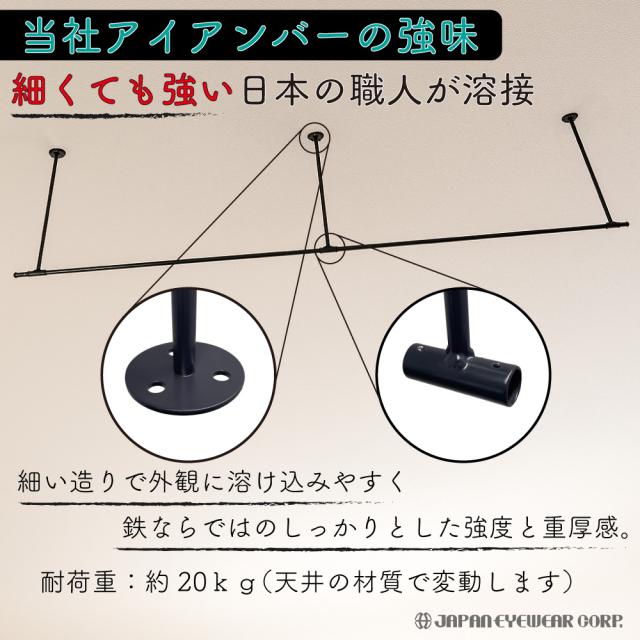 アイアンバー 2000mm 460mm 物干し ランドリーバー ハンギングバー ハンガーバー アイアン リフォーム 完全日本製 DIY