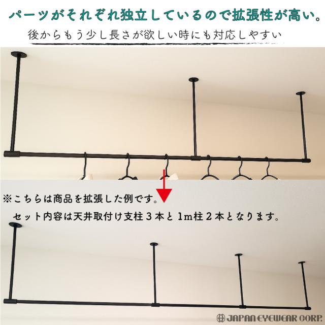 天井支柱とバーがそれぞれ独立しているので拡張性が高いのが強み。