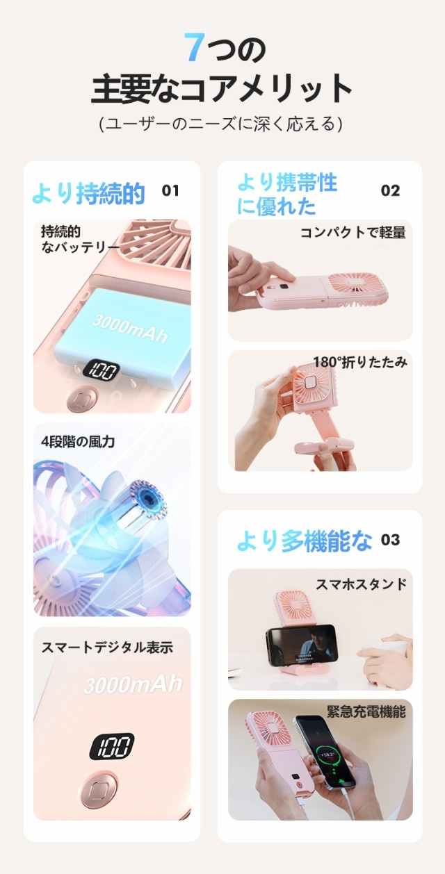 【50%オフクーポン配布中】 2025最新 卓上扇風機 首掛け扇風機 洗える ネッククーラー 静音 折りたたみ 軽量 小型扇風機 モバイルバッテリー スマホスタンド