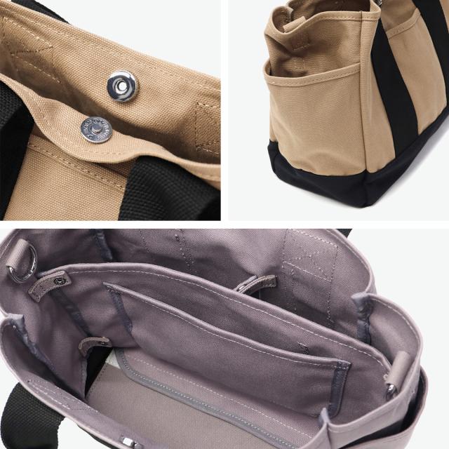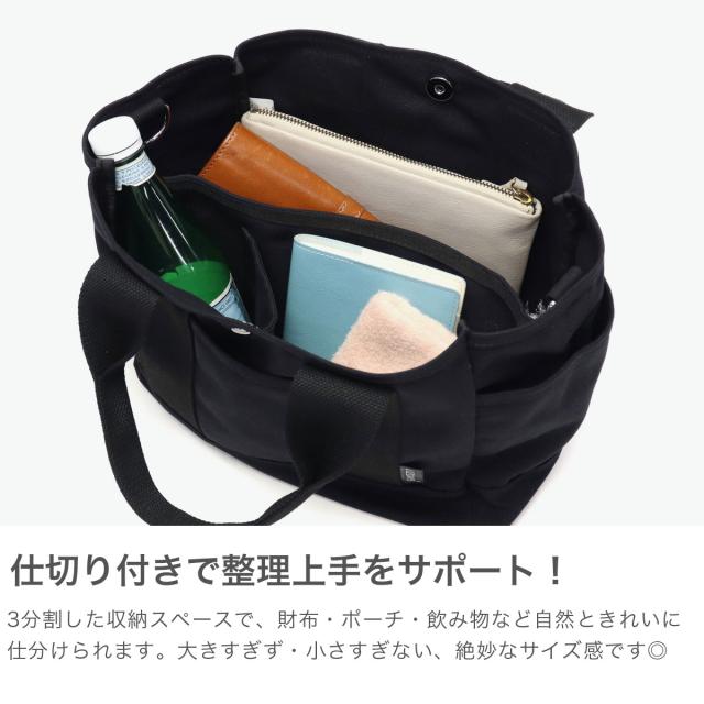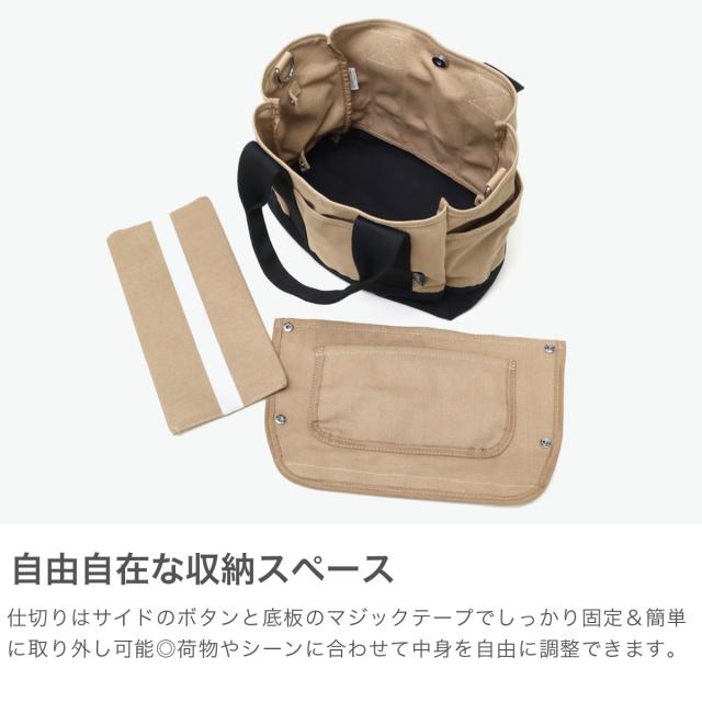 ちょうどいい大きさで毎日使いたくなる機能性キャンバストートバッグです。取り外し可能な仕切りで整理しやすく、底板がしっかり固定され中身のズレを防止。ペットボトルも立てて収納でき、マグネットボタンで中身を隠せる安心設計です。ショルダー付きの2WAY仕様で、通勤・通学やお出かけにぴったりのアイテムです。