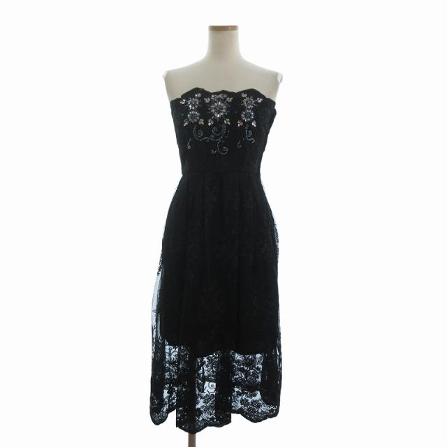 【中古】リリーブラウン L.B CANDYSTOCK ドレス ワンピース ロング 刺繍 レース 花柄 ビジュー LWF0151815 黒 1