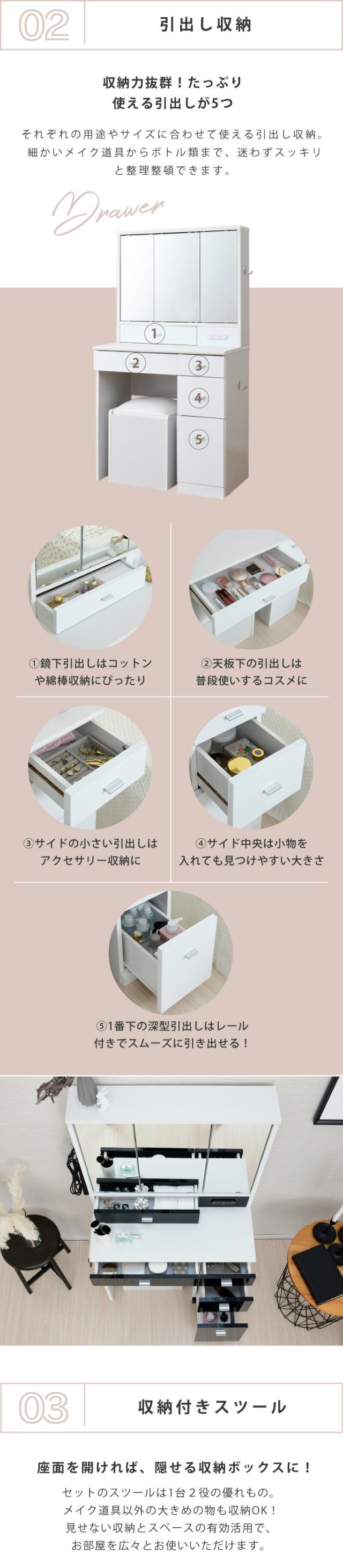 moca company ベルビー 収納庫 収納付き 引き出し 扉 可動棚 チェア セット コスメドレッサー テーブルドレッサー ドレッサーデスク ドレッサーテーブル 三面鏡ドレッサー 化粧品 ミラー コスメ メイク用品入れ メイク机 女優ミラー カントリー シンプル 一人暮らし 鏡台