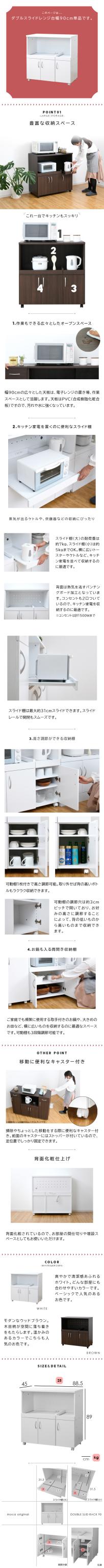 レンジ台 ダブル スライド棚 幅90cm キッチンカウンター 間仕切り 食器棚 スリム キャスター コンセント キッチンワゴン レンジボード 炊飯器ラック 作業台 収納 両面 おしゃれ 奥行45 背面化粧仕上げ