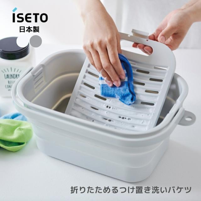 ISETO 折りたためるつけ置き洗いバケツ I-617 洗濯 バケツ つけ置き 折りたたみ 蓋付き 日本製 野球 ユニフォーム 靴 四角 足湯 おしゃれ 洗濯板 7L