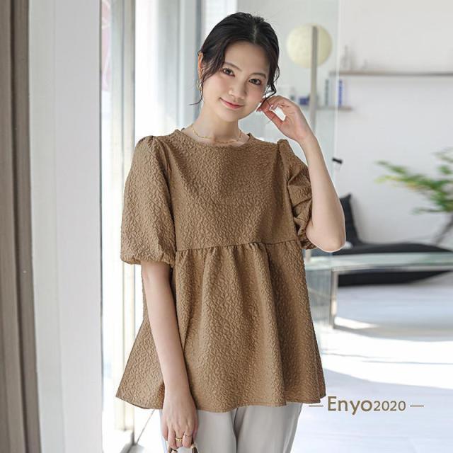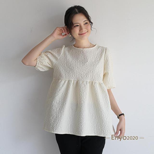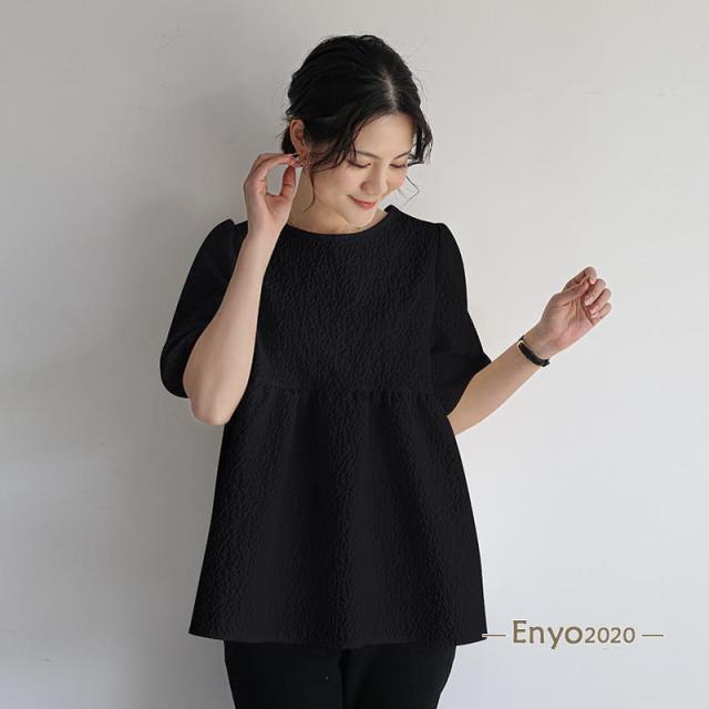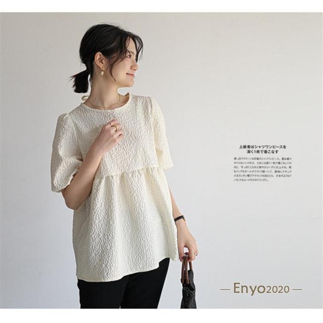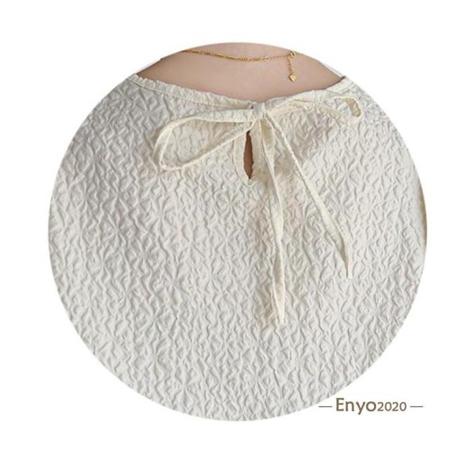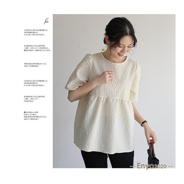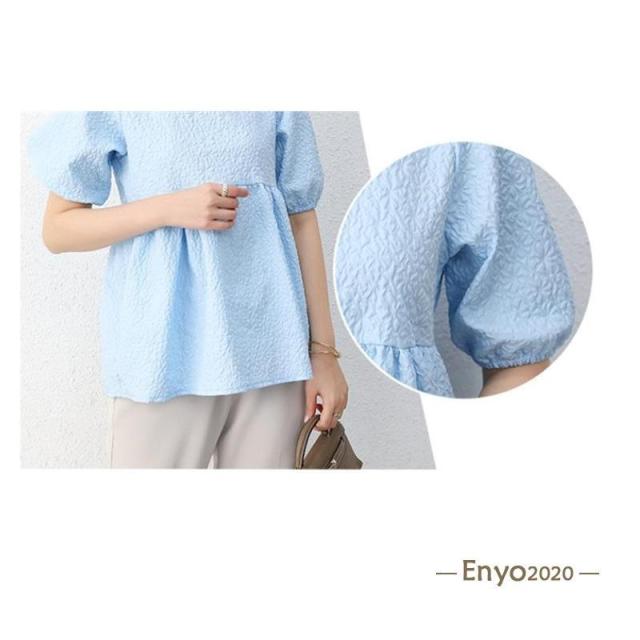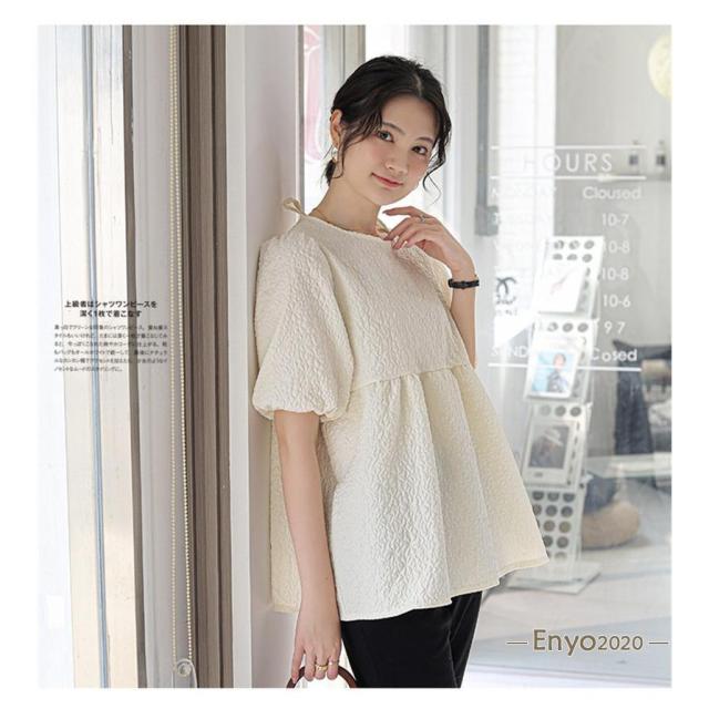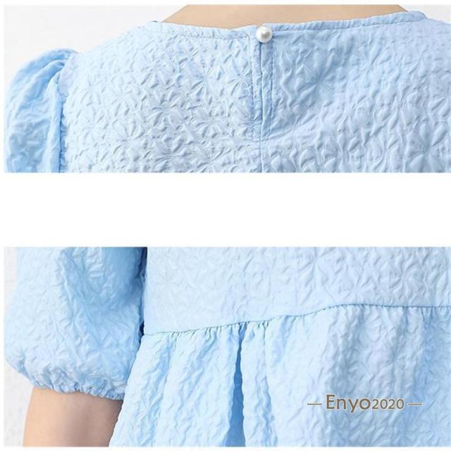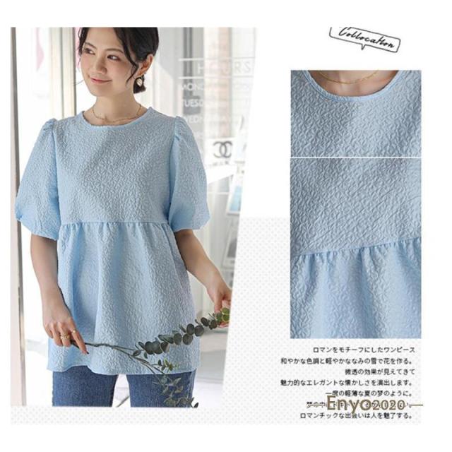 カットソー レディース ブラウス Tシャツ 半袖 tシャツ パフスリーブ エンボス加工 ペプラム バッグリボン トップス 夏服 着痩せ おしゃれ