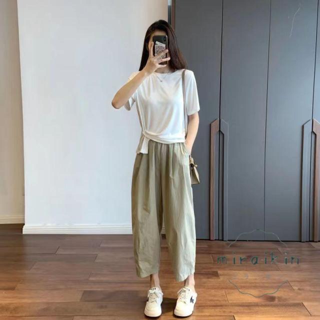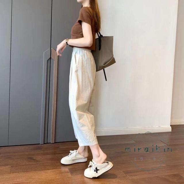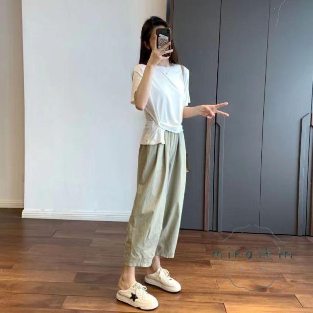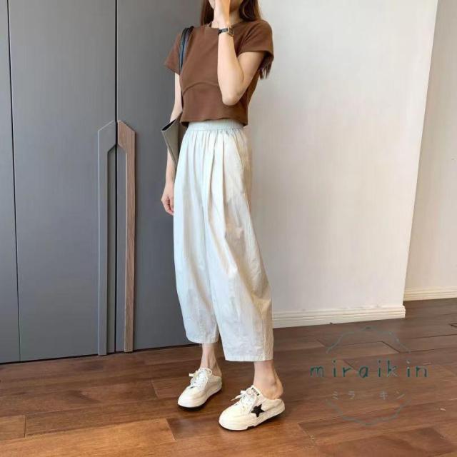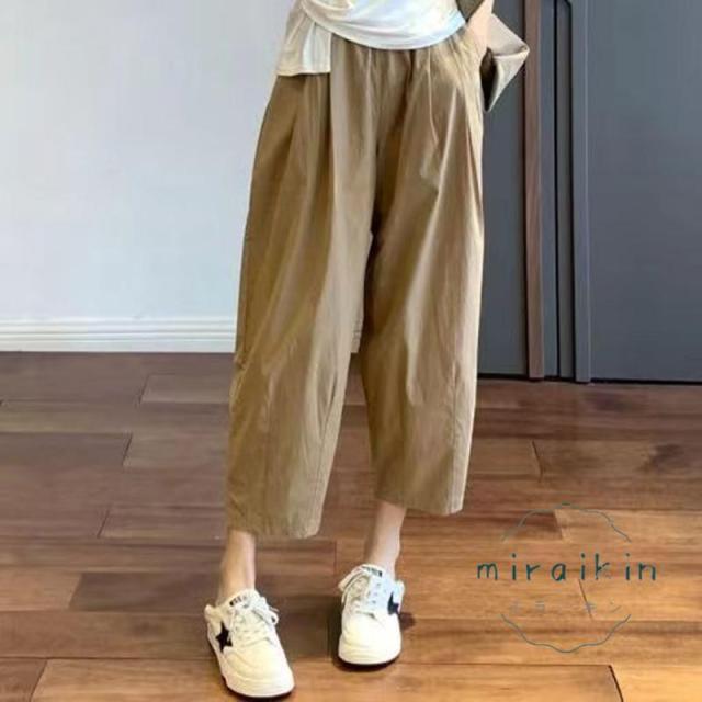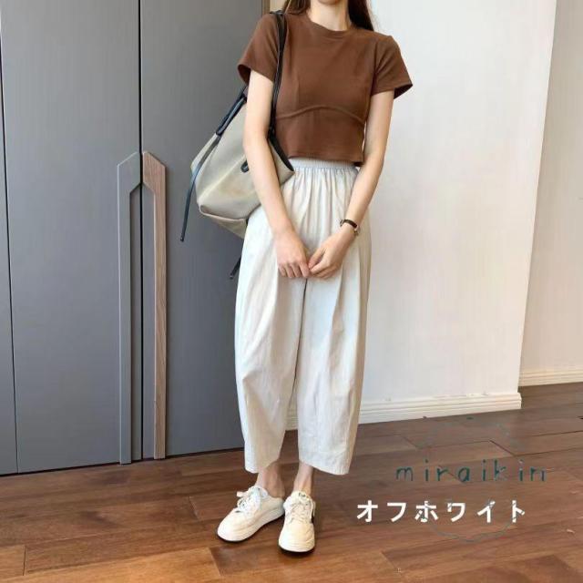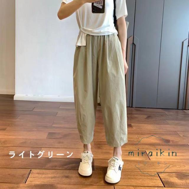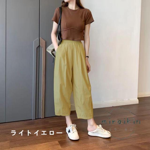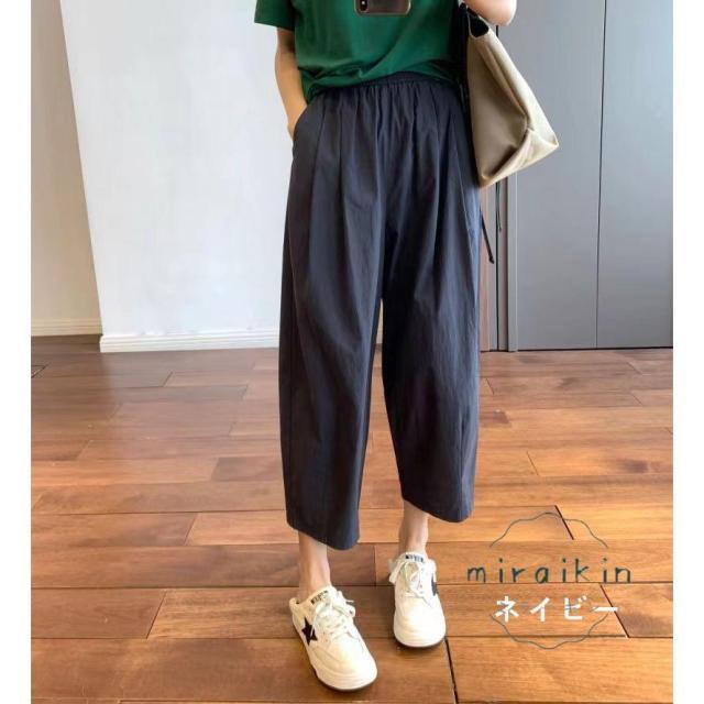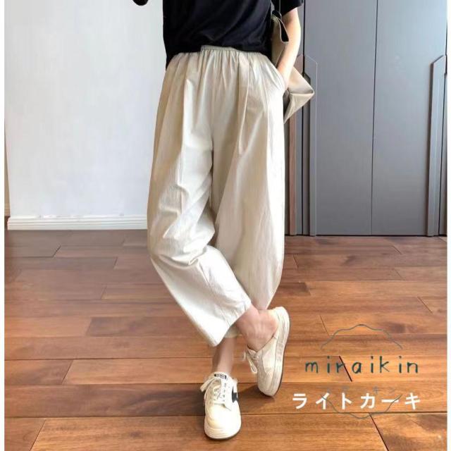 ワイドパンツ レディース パンツ ライトテーパードパンツ チノパンツ ボトムス ズボン 綿 薄手 コクーンパンツ 低身長 九分丈 ウエストゴム ポケット 夏服