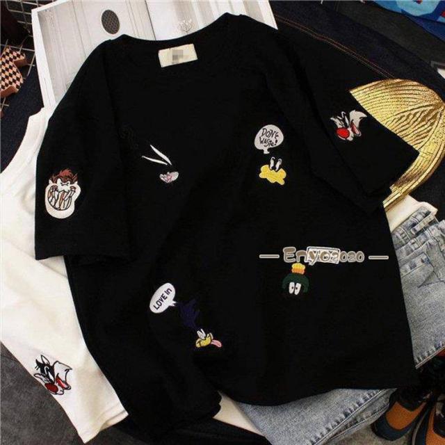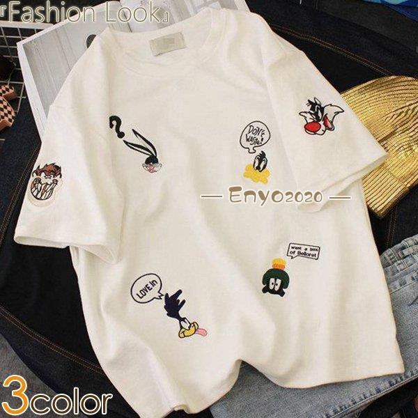 トップス Tシャツ 夏Tシャツ ラウンド襟 刺繍 アニマル柄 無地 夏 春夏 新作 2022