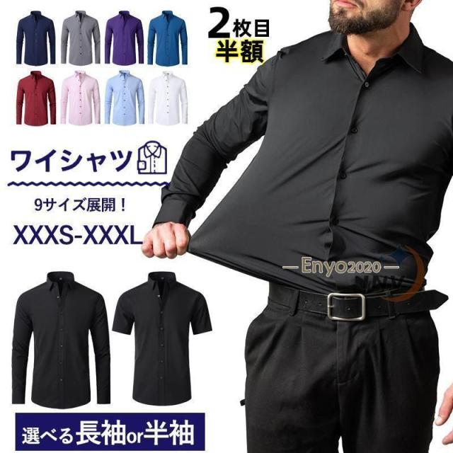 2枚目半額 ワイシャツ ビジネスシャツ メンズ 長袖 半袖 無地 おしゃれ 長袖ワイシャツ 半袖ワイシャツ 形態安定 スリム ストレッチ カジュアル 通勤 通学 安い