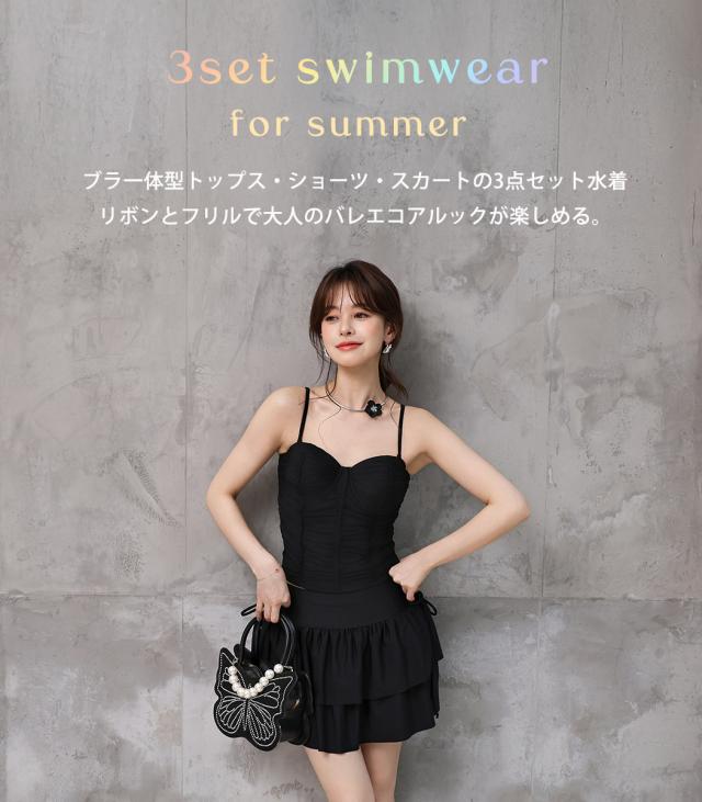 ブラ一体型トップス・ショーツ・スカートの3点セット水着