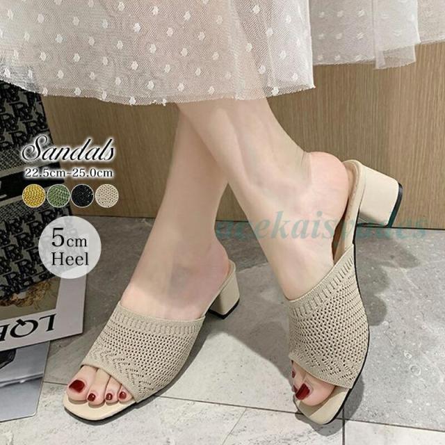 厚底サンダル ミュール 5cm ヒール サンダル 靴 くつ レディース 重厚感 ガーリー オフィス カジュアル 大人女子 デート 女子会 ママコーデ つっかけ スタイルアップ