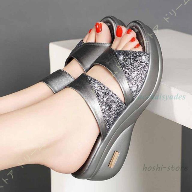 【22.5cm-26.5cm 金色 ゴールド 灰色 グレー】 オフィス ミュール サンダル レディース 大きいサイズ 疲れない サンダル レディース ヒール 5cm 厚底 おしゃれサンダル かわいい コンフォートサンダル 歩きやすい ウェッジソール ウエッジソール クッション性 カジュアル