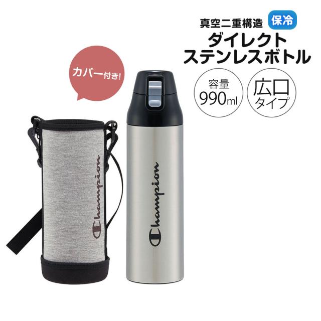 \今だけ10%OFF/ ステンレスボトル ワンプッシュ ダイレクトボトル 水筒 990ml 大容量 大きめ 保冷 直飲み カバー付き ストラップ 広口 真空断熱 軽量 マイボトル 男性 女性 子供 部活 メンズ レディース スポーツ KSDC10S