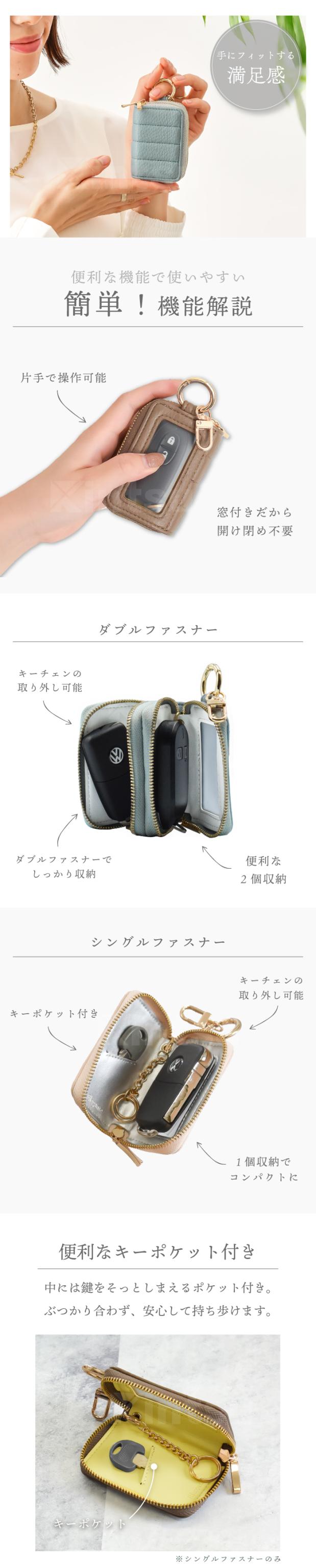 公式 Elegante スマートキーケース 窓付き レディース 車 鍵 シングル カラビナ付き コンパクト 大人可愛い くすみカラー バイカラー キーケース スマートキー