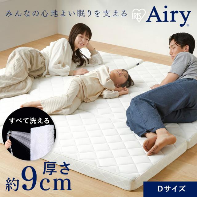 マットレス ダブル 三つ折り 折りたたみ 高反発 厚さ 9cm 通気性 洗える 丸洗い 体圧分散 抗菌 防臭 コンパクト リバーシブルカバー オールシーズン 湿気 直置き 高反発マットレス ベッドマットレス 敷布団 アイリスオーヤマ Airy エアリー HG90R-D * 送料無料