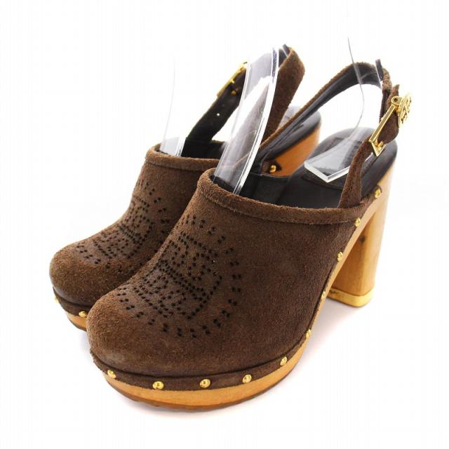 【中古】トリーバーチ TORY BURCH サボ サンダル チャンキーヒール スエード スタッズ 3M 茶 /YM レディース