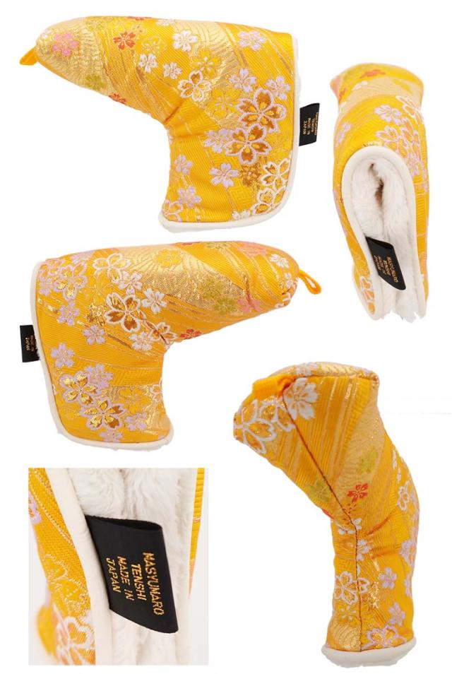 【オーダーメイド】 金襴生地 パター用ヘッドカバー 青海波に小桜 黄色