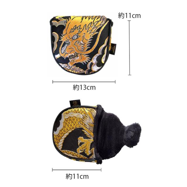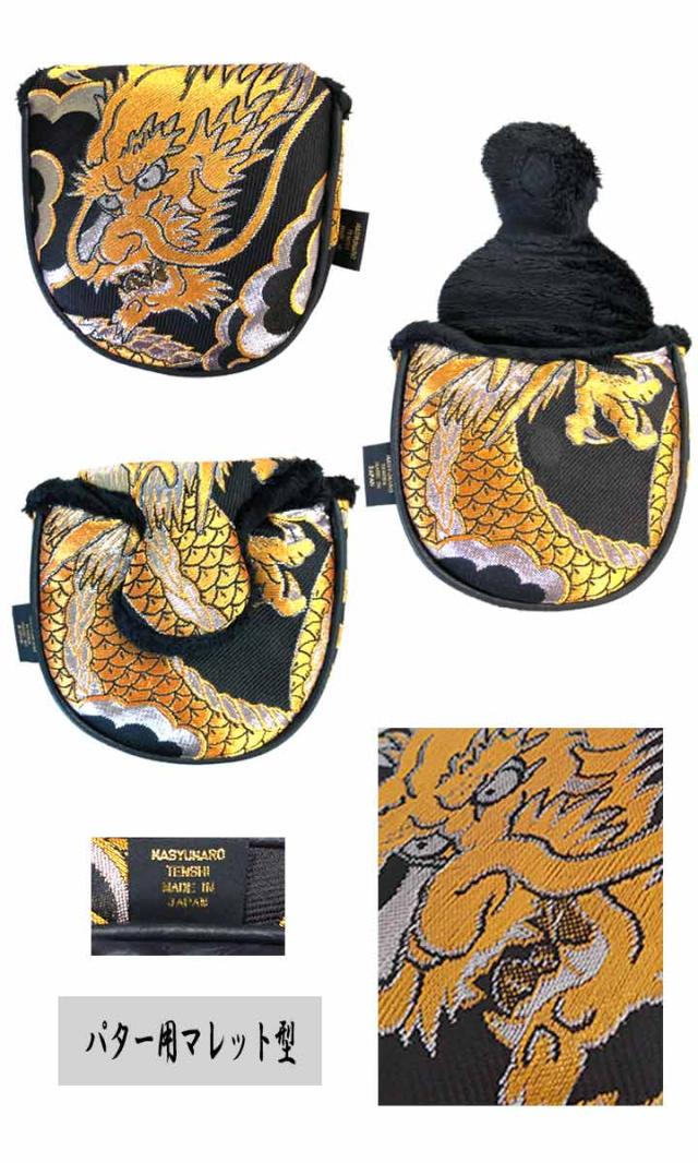 【オーダーメイド】金襴 生地ヘッドカバー パター用 マレット型 金龍 銀龍