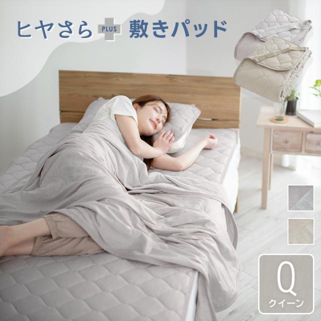 敷きパッド ヒヤさら+(プラス) Q-max0.513 極冷感 リバーシブル 冷感 速乾 クイーン ひんやり 接触冷感 さらさら 吸水速乾 パイル 洗える 清潔 春 夏 秋 抗菌防臭 防ダニ 25S041