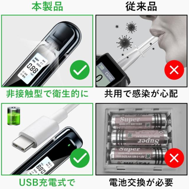 アルコールチェッカー アルコール検知器 吹きかけ式 非接触 最短3秒測定 飲酒検知器 USB充電式 コンパクト アルコール検知器 高精度