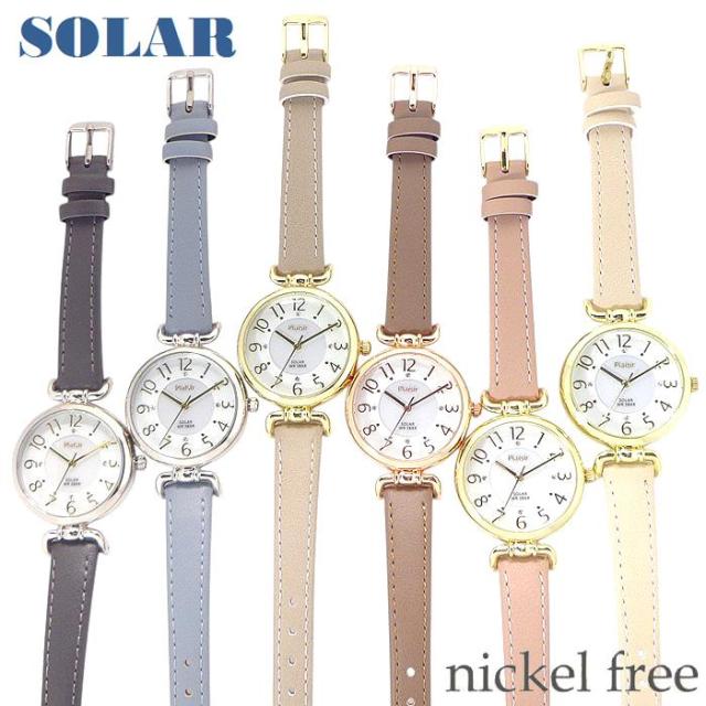 レディース 腕時計 ニッケルフリー ソーラー ウォッチ TSS-905 蓄光ダイアル アラビア数字 革 ベルト 電池交換不要 レディス 時計 金属アレルギー の出にくい ニッケルフリー アレルギー対応 肌に優しい 見やすい 軽量