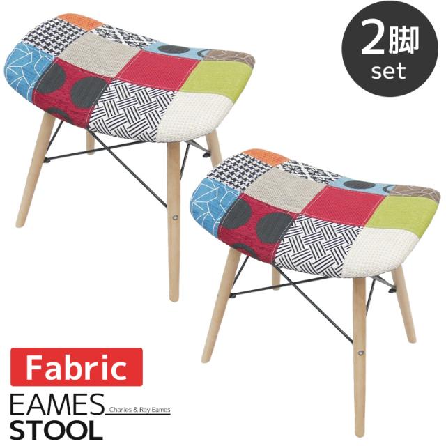 イームズ チェア ファブリック スツール PP-638 木脚 デザイナーズ 家具 おしゃれ インテリア オットマン 北欧テイスト チェック 2脚セット【EM-52】