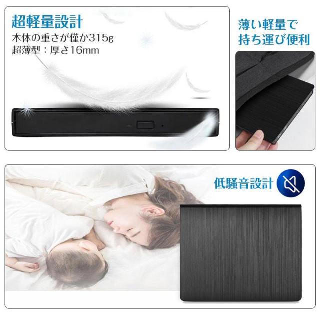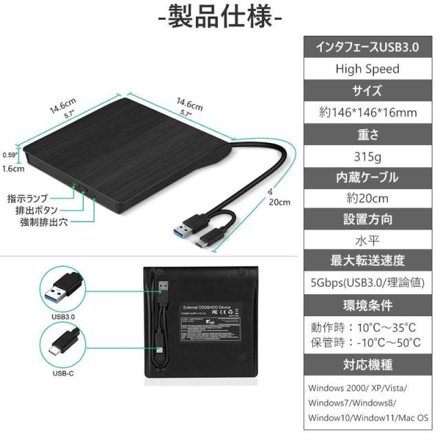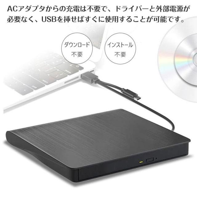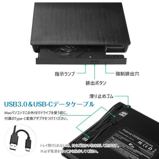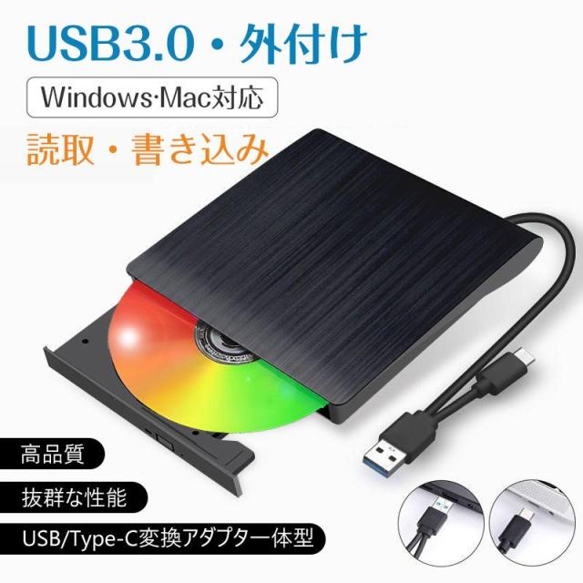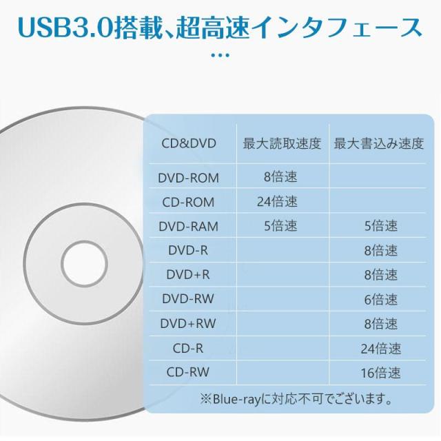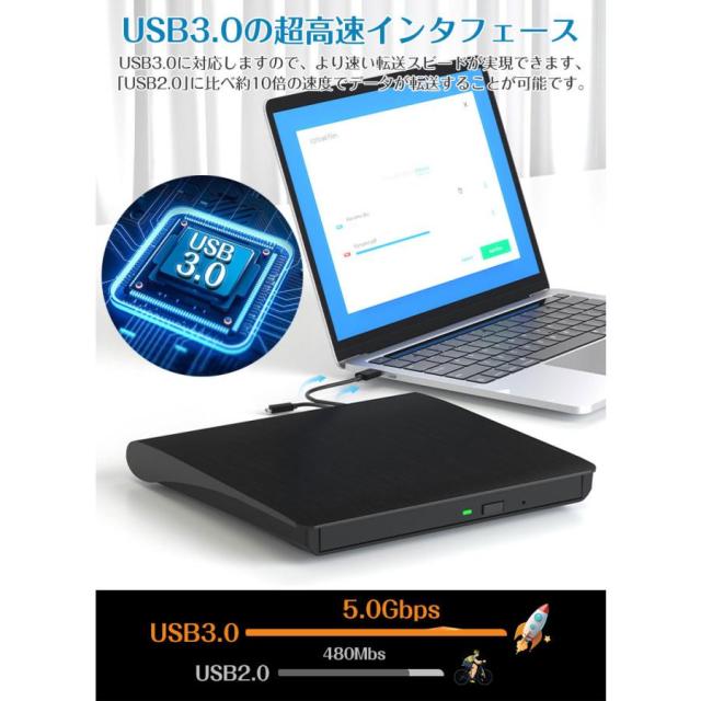 DVDドライブ 外付け USB3.0 Mac CDドライブ 外付け ポータブル Windows10/11対応 DVD-RW CD-RW 書き込み対応