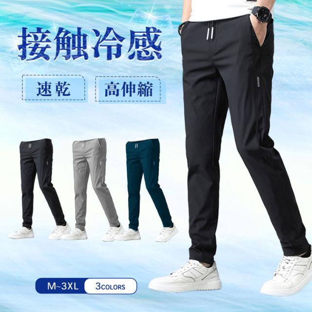接触冷感 パンツ メンズ 冷感 夏 冷感パンツ ゴルフ ゴルフパンツ ズボン ストレッチ ひんやり 涼感 夏用 涼しい 速乾 軽量 ジョガーパンツ ストレッチパンツ アイスシルクパンツ スウェットパンツ
