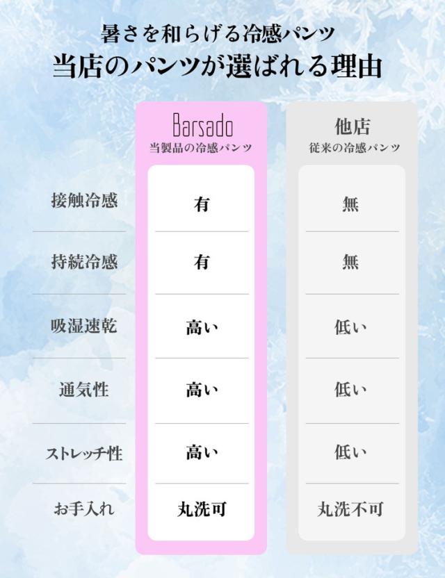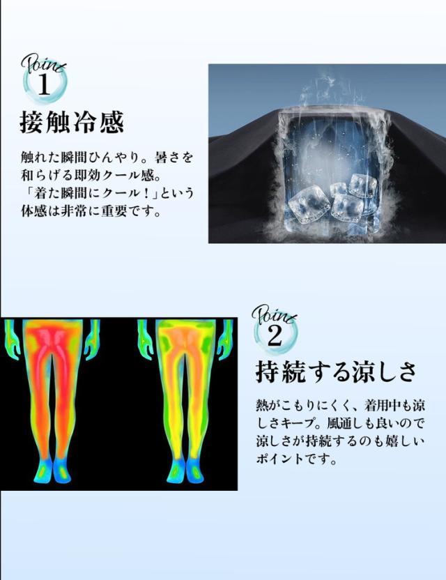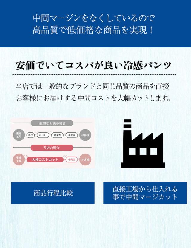 履くだけで瞬間ひんやりする生地を使用した冷感パンツです