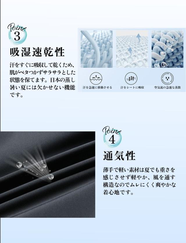 汗をかいてもすぐ吸収して乾くため、べたつかずサラサラした状態をキープします