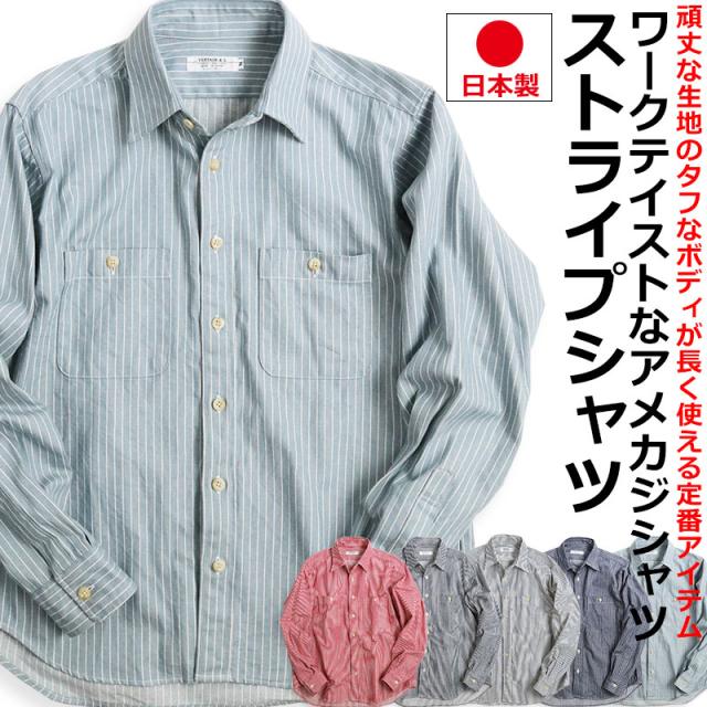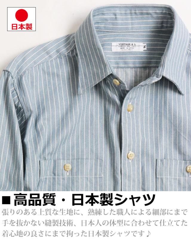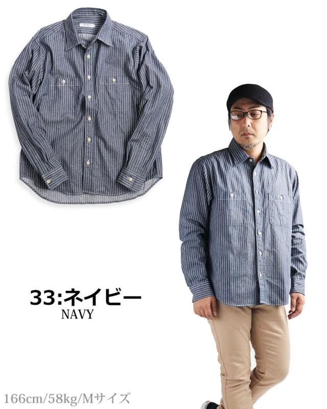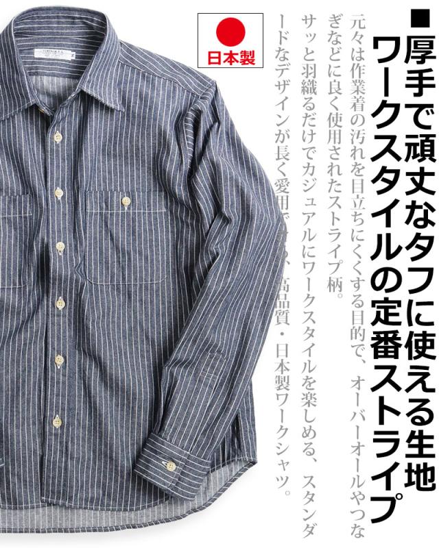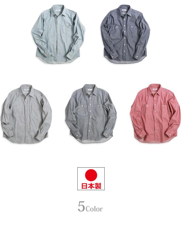 ストライプシャツ メンズ 長袖 ワークシャツ ヒッコリー 日本製 アメカジ QUINTETTO クインテット