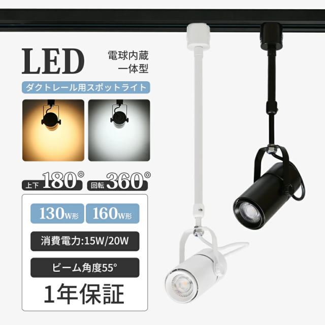 【LED電球内蔵】スポットライト アーム長さ調整可能 LED電球付き 130W形 LED一体型 昼白色 電球色 おしゃれ インテリア レールライト スポット照明 間接照明 ライティングレール ダクトレール LED電球内蔵 ライティングレール専用 レールライト ダイニング 照明器具