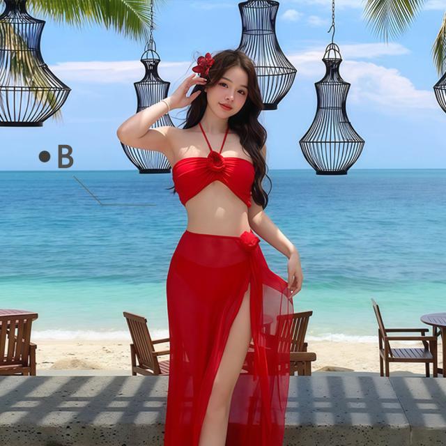 ワンピース水着 3点セット 水着セット 体型カバー水着 レディース 女性 ママ水着 フレア セクシー 水着 ビスチェ ビキニ フレア 水着 体型カバー水着 ハイウエスト パッド一体型 小胸 バスト 盛れる ギンガムチェッ オトナ女子