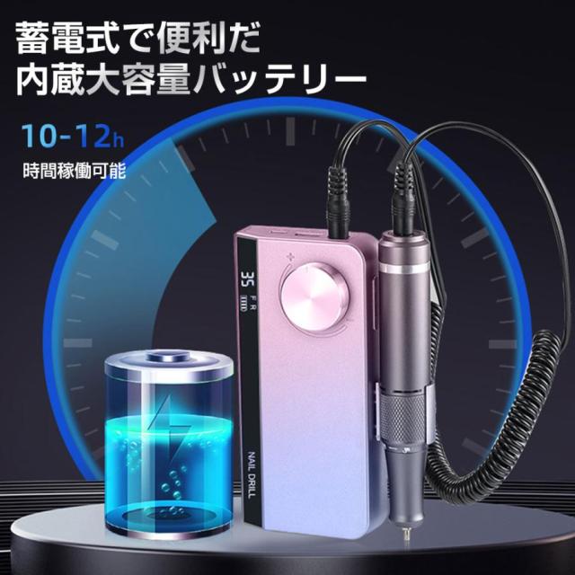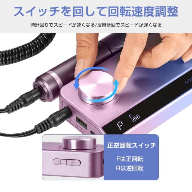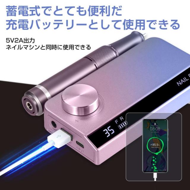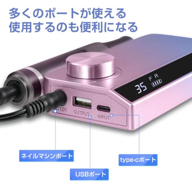 ネイルマシン 電動 正/逆回転 スピード35段階 ビットセット付 モバイルバッテリーとして使用可 ネイルケア ジェルオフ サンディング