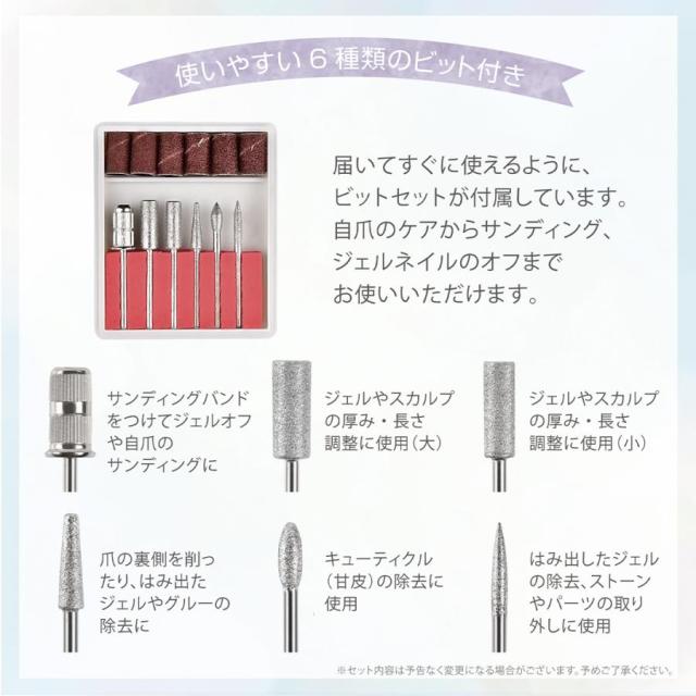■付属品ネイルマシン本体・バッテリー・ビット6本・充電ケーブル ■安心の6ヶ月保証