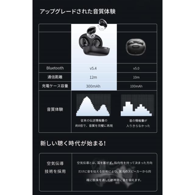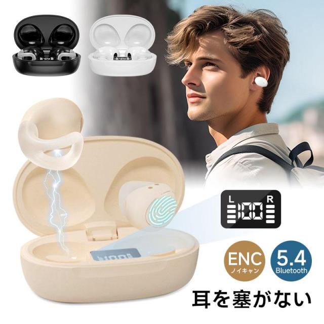 最新発売 空気伝導イヤホン OWS&TWS Bluetooth5.4 オープンイヤー 挟んで装着 イヤーカフ型 iOS/Android/Windows対応 スポーツ向け 防水 ENCノイキャン ハンズフリー通話 限定セール