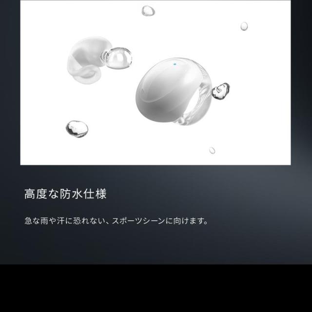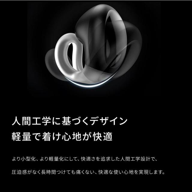 イヤホンは人間工学に基づいて新しいデザインを採用して、耳に挟んで装着するイヤーカフ構造で、どんな耳の形にもフィットします。