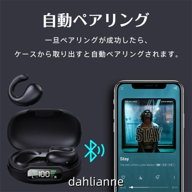 骨伝導イヤホン ワイヤレスイヤホン 片耳 両耳 Bluetooth 5.3 ブルートゥース残量表示 高音質 通話可能 自動ペア 低遅延 タッチ制御