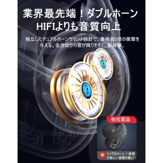A.独立したデュアルホーンサウンド設計で、重低音2倍の衝撃を与える。