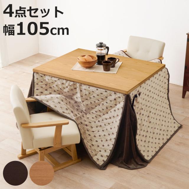 ダイニングこたつセット 4点セット トルタ 幅105cm 継脚こたつテーブル×1 こたつ布団×1 チェア×2 ( こたつ 布団 テーブル ハイタイプ コタツ 回転椅子 2人用 天然木 木製 高さ調節 45〜70cm 継ぎ足 ダイニングテーブル 長方形 )