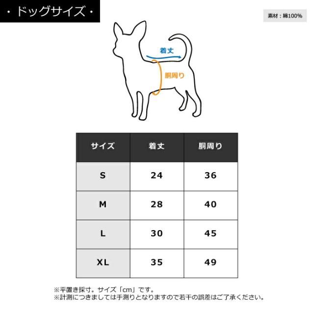 | かならずサイズ表をご確認ください。モニターの発色によって実際の色と見え方が異なる場合がございます。 ※ドッグ用とオーナー用は同じ工場で生産していないため、まったく同じ色味(カラー)ではありませんので、ご了承ください。 カラーやサイズによって、デザインの位置やカラーが異なっておりますので予めご理解の上ご注文ください。 サイズは商品によって多少の誤差がございますのでご了承ください。 |