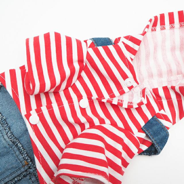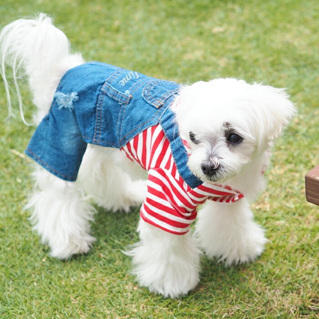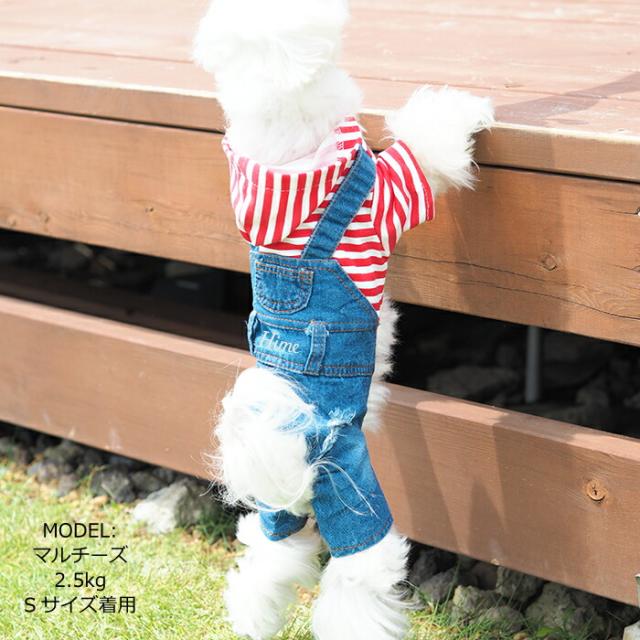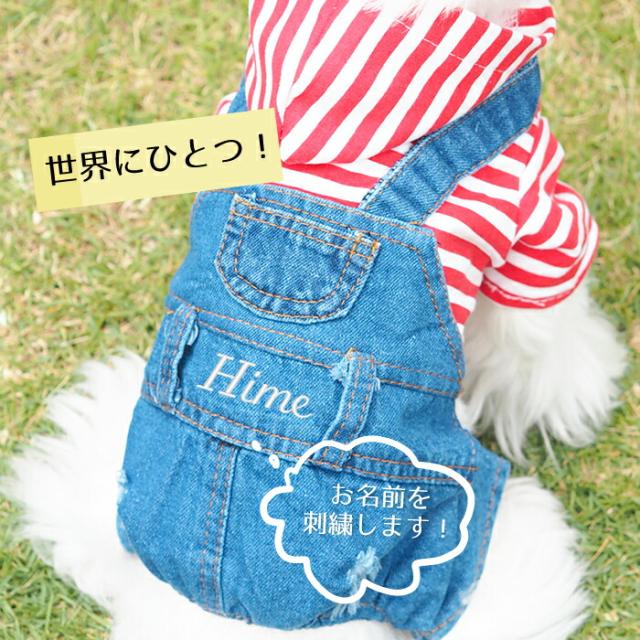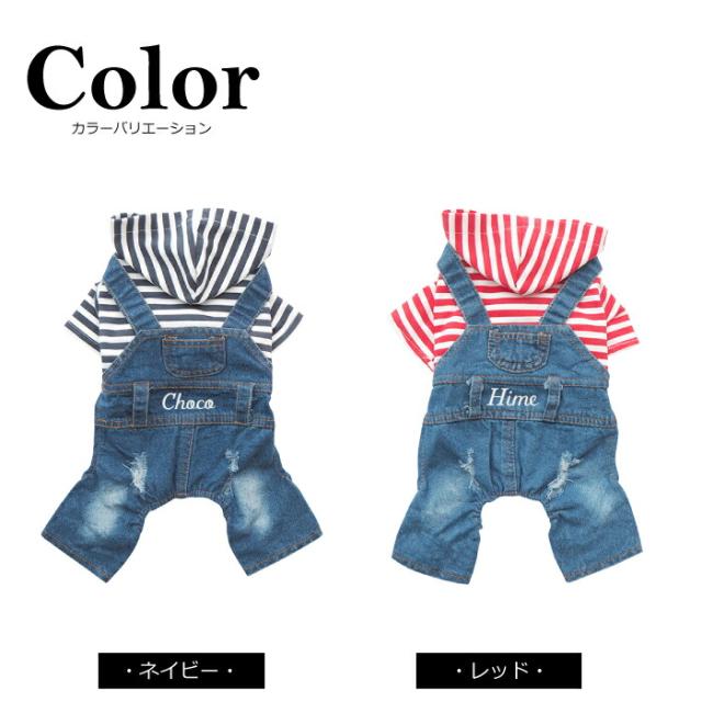 ボーダーロンパース 送料無料 犬服 犬 服 好き 名入れ 名前入り 名前入れ プレゼント ギフト おしゃれ かわいい つなぎ デニム パンツ 刺繍 おすすめ 小型犬 トイプードル チワワ ドッグウェア 犬の服