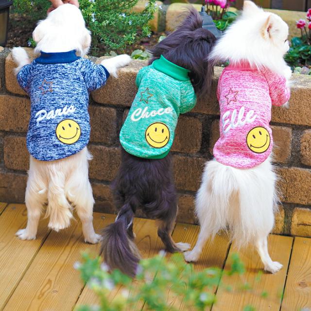 霜降りスマイルトレーナー 送料無料 犬服 犬 服 好き 名入れ 名前入り 名前入れ プレゼント ギフト おしゃれ かわいい トレーナー 長袖 冬服 あたたかい おすすめ 小型犬 トイプードル チワワ ドッグウェア 秋冬 犬の服