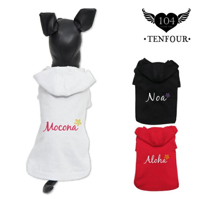 アロハフードTシャツ ペアルックもできる♪ 犬服 犬 服 好き 名入れ 名前入り 名前入れ 刺繍 夏 おしゃれ パーカー 半袖 小型犬 プレゼント ギフト 犬の服 還暦祝い tシャツ お揃い 犬用