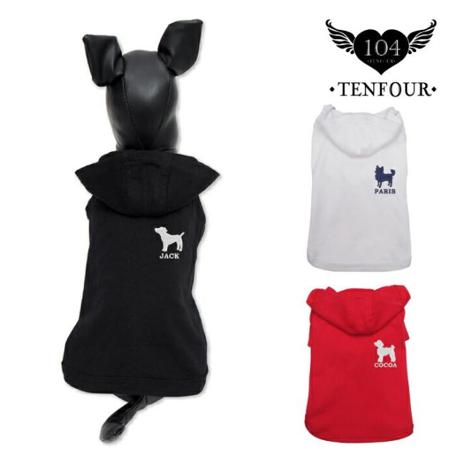 ドッグシルエットフードTシャツ ペアルックもできる♪ 犬服 犬 服 好き 名入れ 名前入り 名前入れ 刺繍 夏 おしゃれ パーカー 半袖 小型犬 プレゼント ギフト 犬の服 還暦祝い tシャツ お揃い 犬用