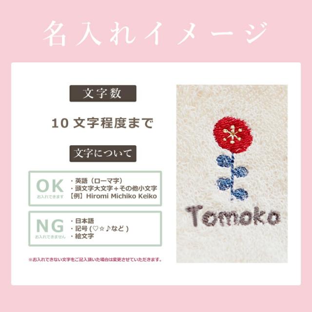 北欧刺? ギフトセット お洒落でかわいい、北欧刺繍入り 今治タオルハンカチと靴下のギフトセット。 オーダーをいただいてからひとつずつ丁寧に。 お好きなモチーフとお名前を刺繍します。 名入れ専門店だからできる高級感のある仕上がり。 ------------------ 《靴下》 お肌に優しい天然素材、シルク混のクルーソックス 絹は通気性・保温性に優れ、夏は涼しく冬は暖かく、 また吸湿・放湿性も高いため蒸れにくく快適です ●靴下のカラーは2色 アイボリー/グレー ■サイズ:22−24cm ■素材:絹・綿・ポリエステル・ポリウレタン 中国製 ------------------ 《タオルハンカチ》 安心の今治タオルブランド認定 吸水性があり、肌触りのいいタオルハンカチ。 ●ハンカチのカラーは2色 アイボリー/グレー ■サイズ:25 × 25cm ■素材:綿100% 日本製 ------------------ ●モチーフをお選びいただけます。 贈る方のイメージにあわせて、お選びください。 おはな/つぼみ/よつば/きのこ/ちょう/とり 《名入れについて》 文字:ローマ字(頭文字大文字+その他小文字)のみ 文字数:10文字程度まで 例:Hiromi Michiko Keiko 上記以外の形式でご記入いただいた場合は、当店で変更をさせていただきます。 ご了承のほどお願いいたします。 《ギフトBOX無料》 おしゃれなリボンタグ付きのギフトBOXにいれてお届けします。 |