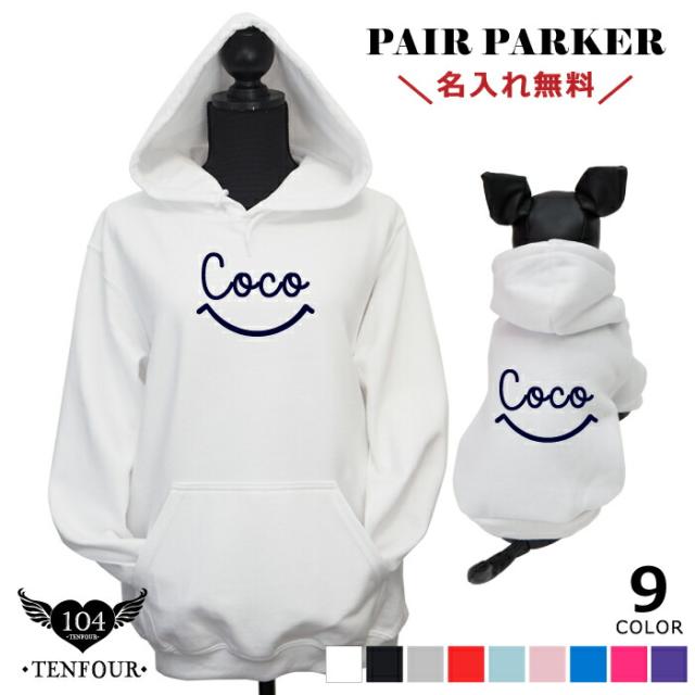 スマイリーペアパーカー 犬 飼い主 ペアルック 送料無料 ペットとお揃い ペット 愛犬とお揃い 犬と名入れ 名前入り 名入り 名前入り 犬の服 フーディ— パーカー 冬 長袖 おしゃれ 服 好き プレゼント 女性 男性 誕生日 還暦 小型中型楽天