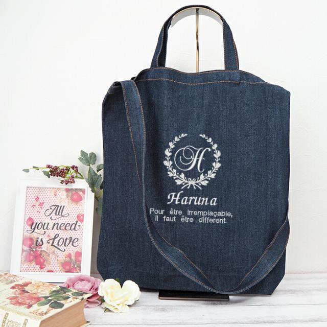 プレゼント 名入れ 名前入り フローラル デニムトートショルダー 誕生日 女友達 トートバッグ ギフト イニシャル 推し活 団扇バッグ うちわバッグ レディース 女性 おしゃれ お母さん プチギフト 20代 30代 40代 50代 ランキング 楽天 花以外 喜ばれる 実用的