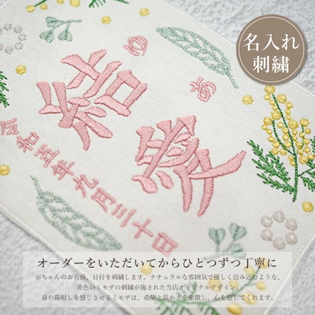 命名書 刺繍 オーダー かわいい おしゃれ 命名札 ミモザピンク 名前旗 名前札 命名 初節句 七五三 お食い初め お宮参り お七夜 ひな祭り 出産祝い 百日祝い 初誕生 赤ちゃん お祝い